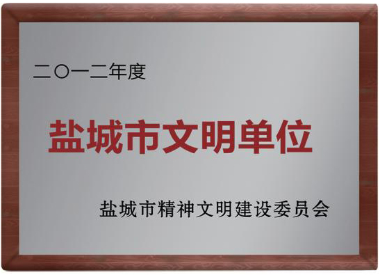 2022年4月公司被授予2021年度鹽城市文明創(chuàng)建工作先進集體榮譽稱號