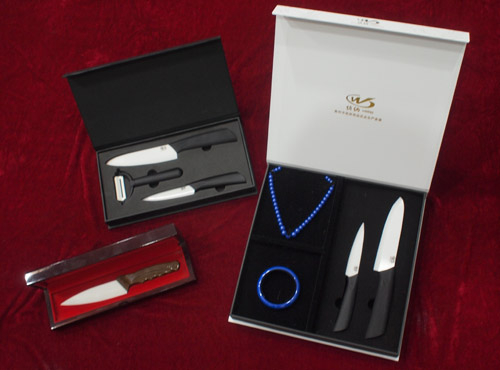 陶瓷刀,外觀如玉石般潔白柔和,色澤圓潤。用于現(xiàn)代廚房。它打磨的刀刃及刀面均勻一致切削靈巧方便,刀刃鋒利,硬度僅次于金剛石,陶瓷餐刀體現(xiàn)的是新世紀新材料的綠色環(huán)保概念?! 、?陶瓷刀不生銹變色,健康環(huán)保,可耐酸堿的腐蝕?! 、?便于清洗,能保持食品的原色、原味,減少細菌滋生?! ?