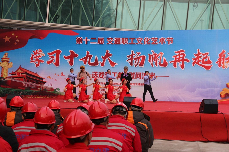 據(jù)悉,此次“送戲進(jìn)工地”活動(dòng)是市交通運(yùn)輸局主辦的第十二屆交通職工文化藝術(shù)節(jié)系列活動(dòng)之一,旨在通過(guò)寓教于樂(lè)的方式向奮戰(zhàn)在一線的建設(shè)工人宣傳十九大精神,滿足工人們的精神文化需求;顒(dòng)中,演出人員通過(guò)小品、歌舞、相聲、快板等喜聞樂(lè)見(jiàn)的演出方式表演了《安全情系你我他》《交通運(yùn)輸新氣象》《共圓中國(guó)夢(mèng)》等精彩節(jié)目,為觀眾奉上了一場(chǎng)豐盛的文化大餐。