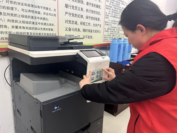 活動中,志愿者們向機關工作人員發(fā)放“節(jié)約用紙”宣傳資料,講解浪費紙張的危害和節(jié)約用紙的益處,倡議抽紙只抽一張、學會二次利用紙張、少用一次性紙杯、打印文件時盡量選擇雙面打印。同時在各部門的耗能產(chǎn)品等醒目位置,都張貼了“節(jié)約用紙”標識標貼。