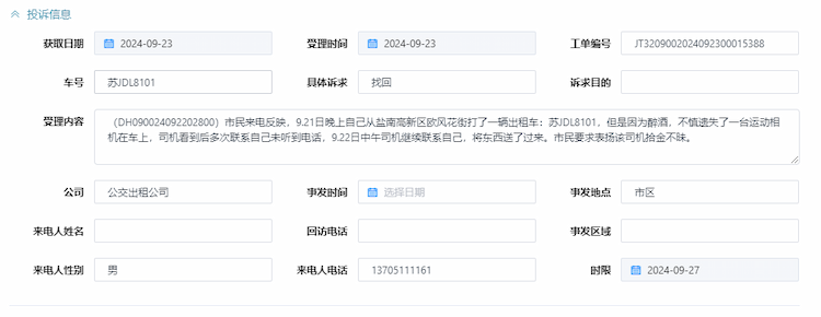 9月23日,公交出租公司接到市交通運輸服務中心轉來的12345政務熱線表揚工單,市民宋先生來電對蘇JDL8101出租車駕駛員李金昆師傅拾金不昧、主動歸還的善舉表示感謝。