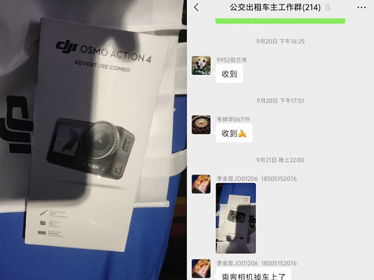 9月21日21時,李師傅接送一位醉酒乘客從歐風花街到高教公寓小區(qū),乘客下車時不慎將未開封的大疆 Action4高清運動相機落在車內(nèi)后座。李師傅發(fā)現(xiàn)后,主動上報公司,同時通過網(wǎng)約車平臺多次聯(lián)系乘客,但沒有得到回復,李師傅便在平臺留下自己聯(lián)系方式,讓乘客第一時間與他聯(lián)系。第二天中午失主主動聯(lián)系了李師傅,李師傅在確認相機包內(nèi)發(fā)票信息后,才放心地將其歸還給失主,并婉拒了乘客200元現(xiàn)金酬謝。
