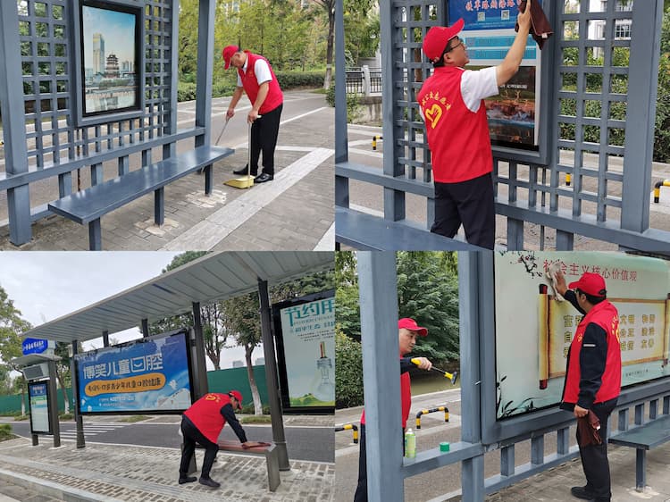活動(dòng)現(xiàn)場,志愿者們身穿紅馬甲,拎著水桶、拿著抹布、掃把、小鏟刀、除膠劑等工具來到公交站臺(tái),認(rèn)真細(xì)致地擦拭著站牌玻璃和金屬邊框、廣告欄和等候椅,清理了站臺(tái)附近的白色垃圾、紙屑等雜物,鏟除附著在站臺(tái)櫥窗上的異物,以飽滿的熱情投入到站臺(tái)的清潔勞動(dòng)中,不怕臟、不怕累,團(tuán)結(jié)協(xié)作,踐行志愿服務(wù)精神、感悟勞動(dòng)的幸福。