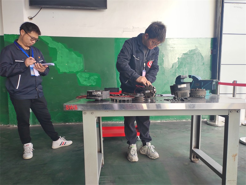 本次技能大比拼項(xiàng)目為發(fā)電機(jī)綜合技術(shù)檢驗(yàn)工藝,共有十二名修理工同臺(tái)競(jìng)技。比賽采用抽簽的方式,參賽人員按抽中的數(shù)字編號(hào)依次對(duì)車輛的發(fā)電機(jī)進(jìn)行檢查,并通過選擇適合的檢驗(yàn)量具進(jìn)行檢測(cè),判斷發(fā)電機(jī)各零部件是否合格、能否修復(fù)。檢驗(yàn)完畢后將發(fā)電機(jī)拼裝完畢,裁判們對(duì)安全規(guī)范操作、工具使用和擺放、正確判斷故障流程、場(chǎng)地衛(wèi)生清潔、所用時(shí)長(zhǎng)等方面進(jìn)行打分。