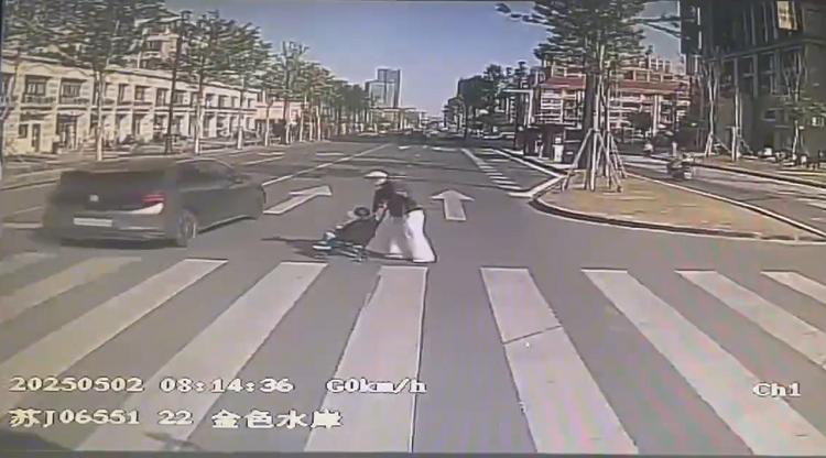 據(jù)了解,事發(fā)當時,金師傅正駕駛22路公交車行駛至金色水岸站附近,遠遠看到前方斑馬線上裘女士正推著嬰兒車等待過馬路,于是便減速停車讓行。正當裘女士迅速推車過馬路之際,金師傅通過后視鏡發(fā)現(xiàn)左側后方有一輛黑色私家車正快速駛近,且未有減速跡象。在這緊要關頭,金師傅迅速長按喇叭發(fā)出警報,尖銳的鳴笛聲使裘女士立刻警覺并停下了腳步。幾乎同時,私家車從裘女士前方不到一米處飛馳而過,情況極為驚險。