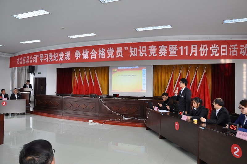 為推進(jìn)“兩學(xué)一做”學(xué)習(xí)教育常態(tài)化制度化,豐富黨員學(xué)習(xí)形式,提升黨員學(xué)習(xí)成效,11月23日下午,鹽城市公共交通總公司舉辦了“學(xué)習(xí)黨紀(jì)黨規(guī) 爭做合格黨員”知識競賽暨11月份黨日活動,各黨支部組成的5支參賽隊伍15名選手參賽,并進(jìn)行了激烈角逐。
