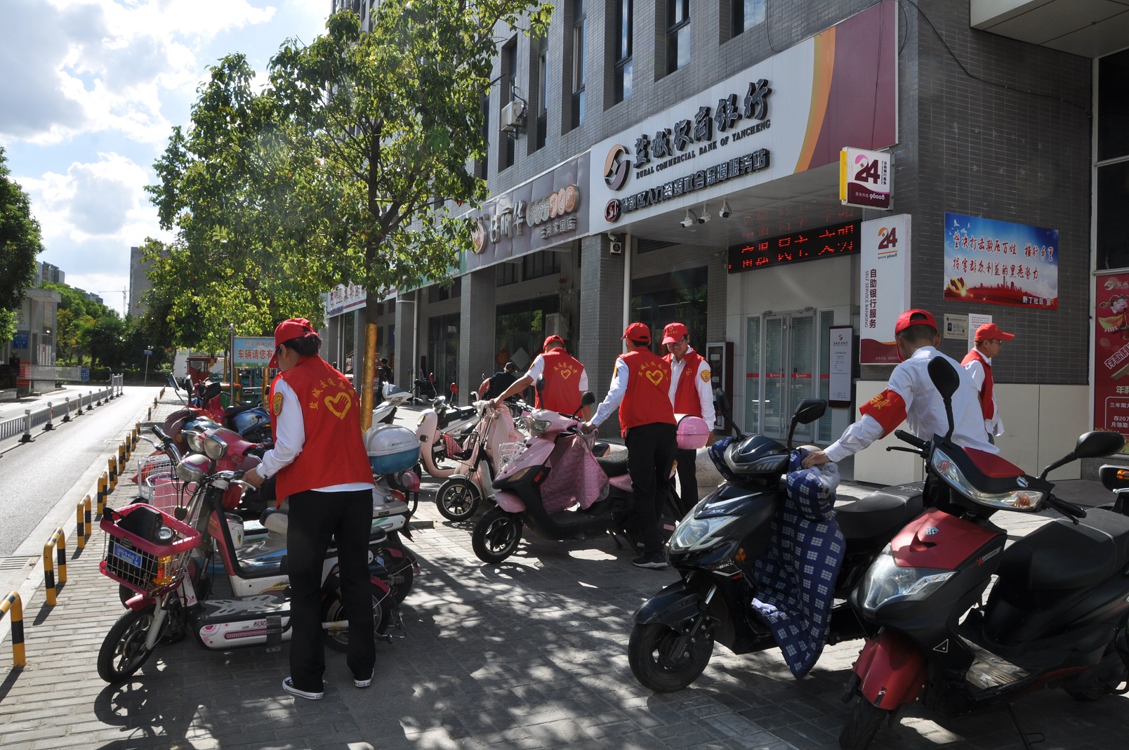 活動中,志愿者們分成兩批,一批身穿志愿者紅馬甲,手臂佩戴文明勸導員紅色袖章開展文明交通勸導活動,他們站在十字路口斑馬線處,協(xié)助維護交通秩序,引導行人和非機動車輛遵守紅綠燈信號、走斑馬線過馬路,幫助行人糾正不文明交通行為。此外,他們還幫助維持路邊非機動車輛停放秩序,把車輛擺放在指定停車線內(nèi),讓車輛停放得井然有序!