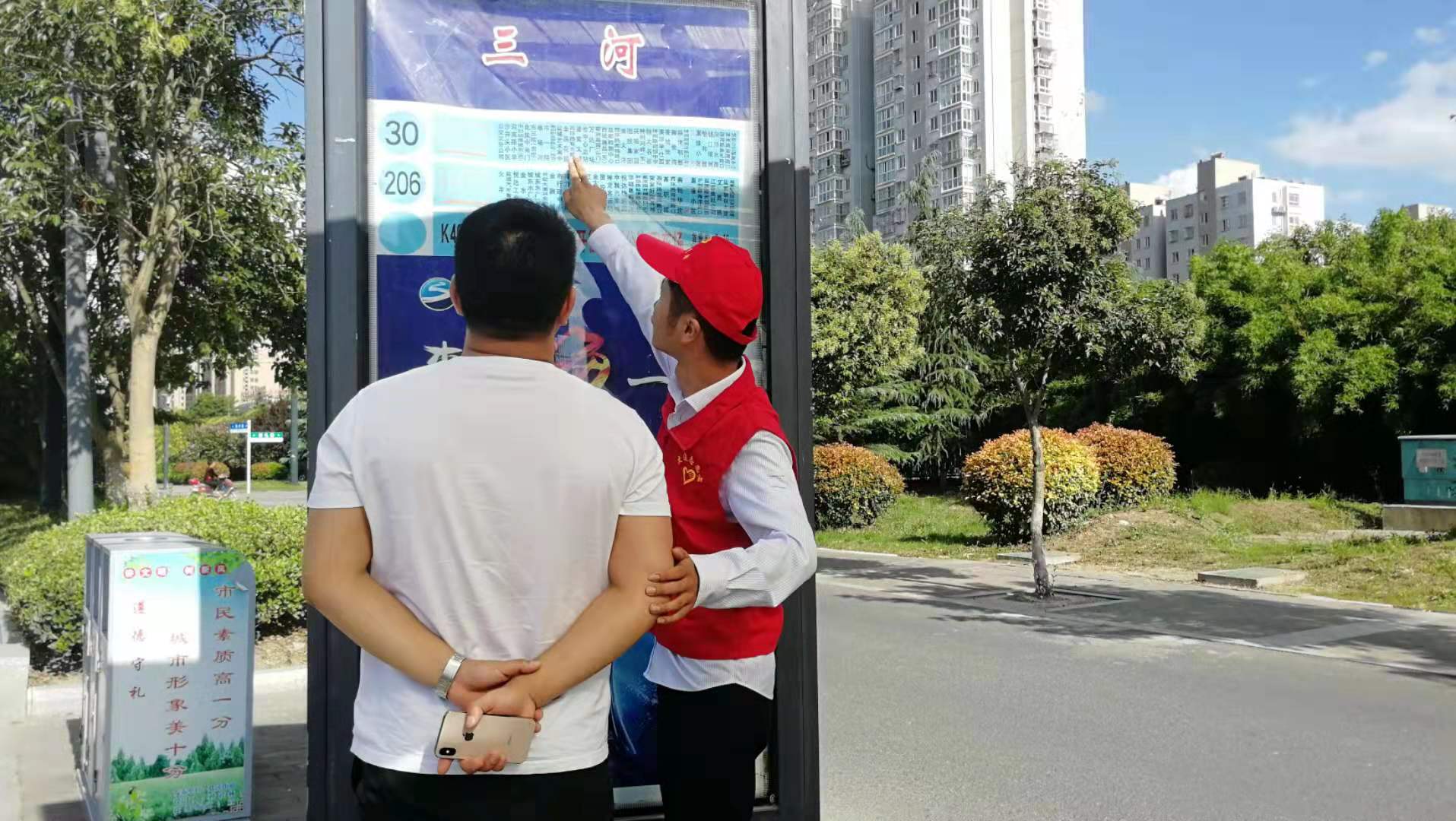 另一批志愿者們來到三河家園小區(qū)和菜市場,像居民群眾發(fā)放綠色出行倡議書,向群眾提供公交出行、換乘等咨詢服務,引導市民群眾綠色出行、優(yōu)選公交!