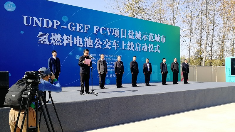 1120日,氫燃料電池公交車上線啟動儀式在鹽城創(chuàng)詠加氫站公交回車場舉行,市長曹路寶出席,并乘車體驗。這是我市開通的首條氫能公交示范線路,首批投放10臺車在K11線運營。