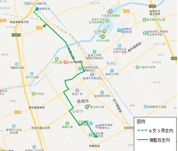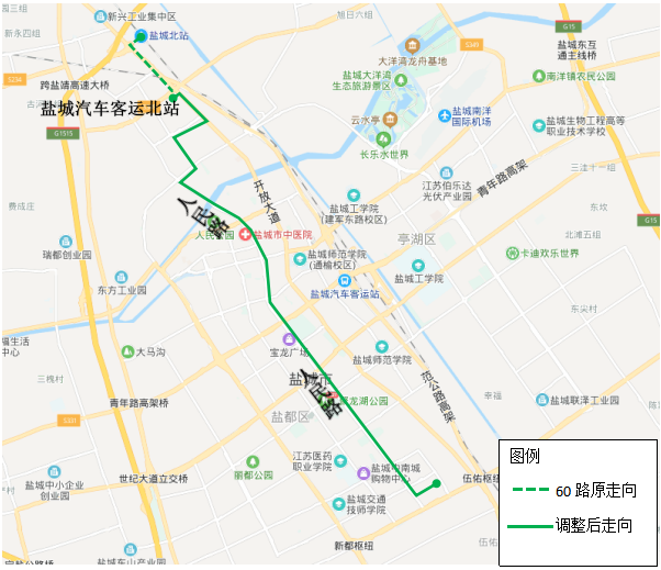12月30日起,鹽城火車北站停止運營,為更好地服務市民出行,市公交總公司將同步調整B支5、20路、60路等3條線路終點站至汽車客運北站,調整后的線路走向及?空军c如下:
