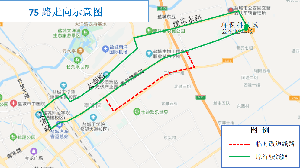 沿途站點(diǎn):西環(huán)路黃海路口、鹽城藝術(shù)高中、醫(yī)藥職業(yè)學(xué)院(市一院西)、泰山廟、太平橋、康復(fù)中心、廣濟(jì)醫(yī)院、大慶路、鹽南新村、青年路(單向)、青年路迎賓路口、青年路人民路口、青年路開(kāi)放大道、青年路六合路口、鹽城汽車(chē)客運(yùn)站、鹽城高鐵站、鹽城工學(xué)院(北門(mén))、亭湖行政中心、綠地商務(wù)城、亭湖區(qū)人民醫(yī)院、亭湖高級(jí)中學(xué)、躍進(jìn)路、北陵村、青墩連接線(xiàn)、生物工程學(xué)校。