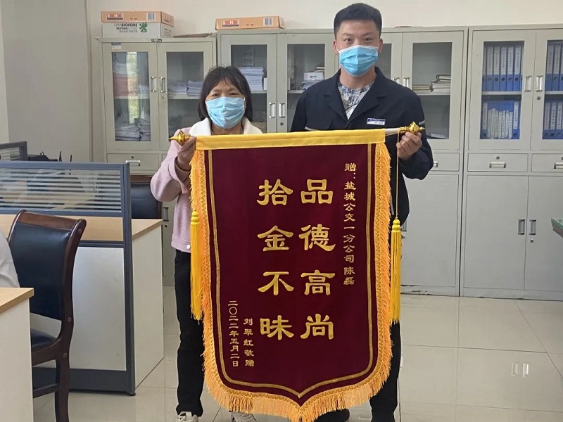 歸還的是失物,送上的是誠(chéng)信。5月2日上午,劉女士乘坐H11蘇J05680D號(hào)車(chē)時(shí)不慎遺失背包,背包里有大量現(xiàn)金和重要證件,駕駛員陳磊發(fā)現(xiàn)后,積極聯(lián)系分公司配合尋找失主,最終完璧歸趙。
