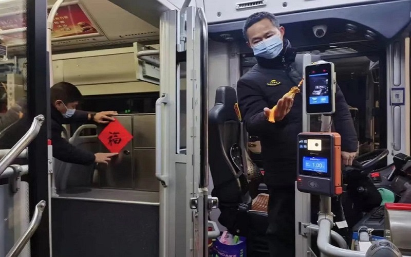 “新年好啊”,1月1日凌晨5時(shí)許,新年伊始,公交一分公司領(lǐng)導(dǎo)班子帶領(lǐng)科(隊(duì))長(zhǎng)等管理人員到所屬車(chē)場(chǎng)為在崗駕駛員、場(chǎng)站管理員等工作人員送上新年祝福,并親手給車(chē)輛掛上中藥防疫香囊、貼上手寫(xiě)“!弊,叮囑駕駛員安全行車(chē)、嚴(yán)防疫情;囑咐場(chǎng)站管理員嚴(yán)格執(zhí)行崗前點(diǎn)呼制度,不能走過(guò)場(chǎng)、流于形式。大家紛紛表示必定全力以赴保出行、優(yōu)服務(wù)。