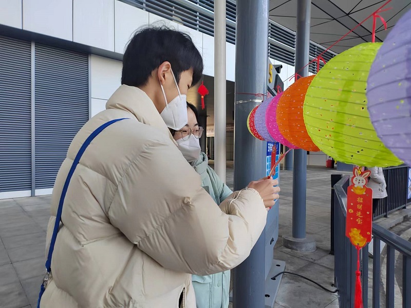 活動現(xiàn)場,志愿者們掛上了燈籠、燈謎等裝飾品,營造喜慶的節(jié)日氛圍。每條謎語都是由志愿者精心收集的,內(nèi)容涵蓋了黨史知識、社會主義核心價值觀、人文地理及黨的二十大報告等內(nèi)容;顒游诉^往市民紛紛駐步觀看,市民踴躍參與,爭先猜謎,你一言、我一語地互相討論,都想把謎底猜出來,猜對答案的乘客開開心心地領(lǐng)取了!巴谩辈寂家恢唬F(xiàn)場洋溢著歡樂、祥和、喜慶的熱烈氣氛。