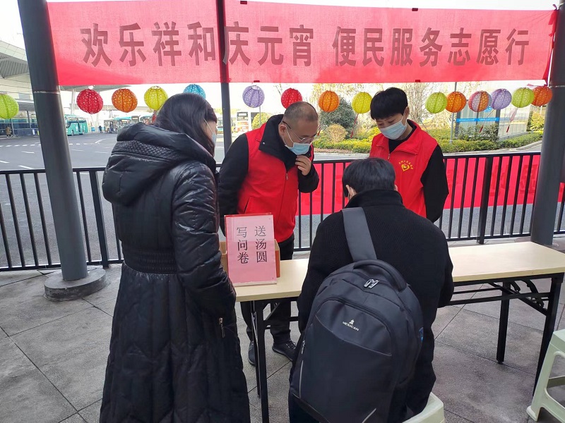 “您好,元宵節(jié)快樂!我們正在開展問卷調(diào)查,請您配合填一下,幫助我們持續(xù)改進(jìn)服務(wù)質(zhì)量……”“您好,98路公交車在5號車位上車,還有三站就要到了,請您稍等一下……”志愿者們一邊開展問卷調(diào)查,一邊熱心解答乘客問題咨詢,幫助乘客提拿行李,維持乘客候車秩序。一句句善意的提醒、一個個暖心的舉動,溫暖了乘客出行路。