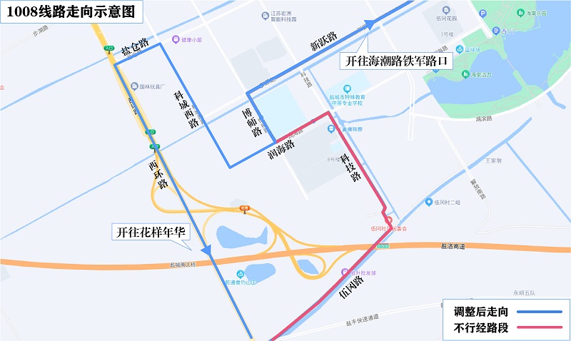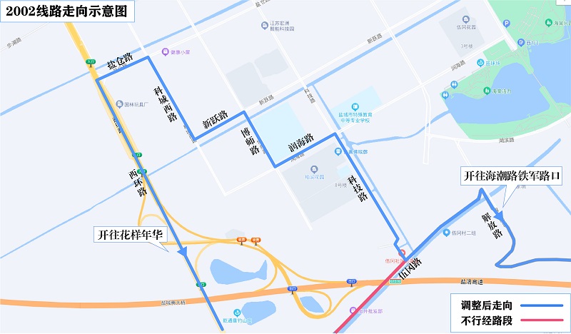 調(diào)整后走向:花樣年華、龍園道、西環(huán)路、鹽倉路、科城西路、潤海路、博師路、新躍路、勝利路、鹽倉路、科教路、學(xué)海路、解放路、海闊路、人民路、海潮路、海潮路鐵軍路口。