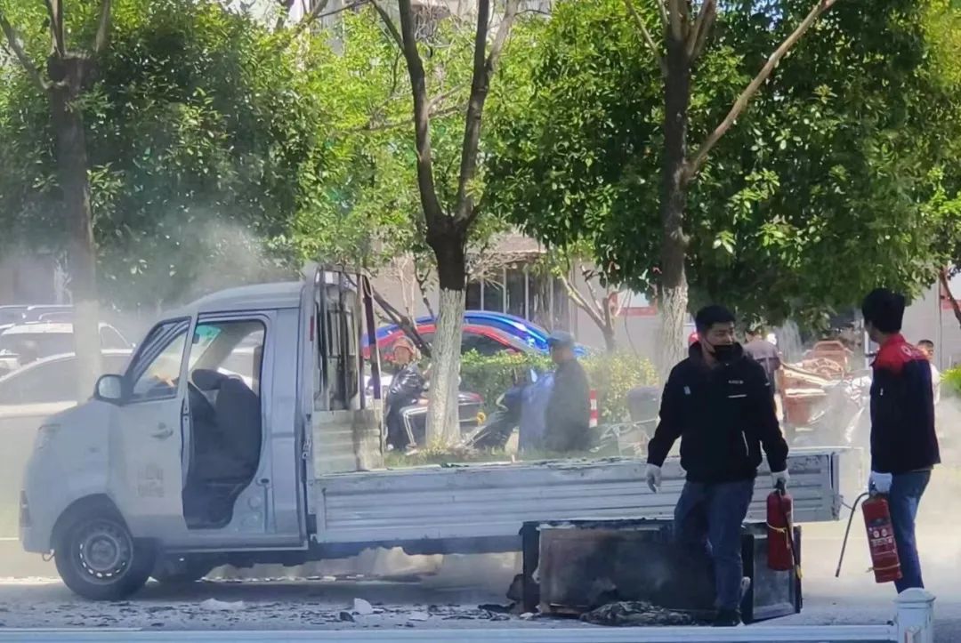 在這緊急關(guān)頭,金浦師傅迅速將車輛停至安全地帶,拎起滅火器就沖了上去。金浦回憶,正在燃燒的貨車黑煙滾滾,嗆得他眼淚直流。