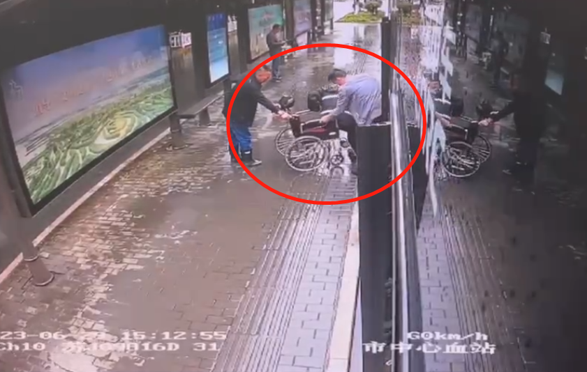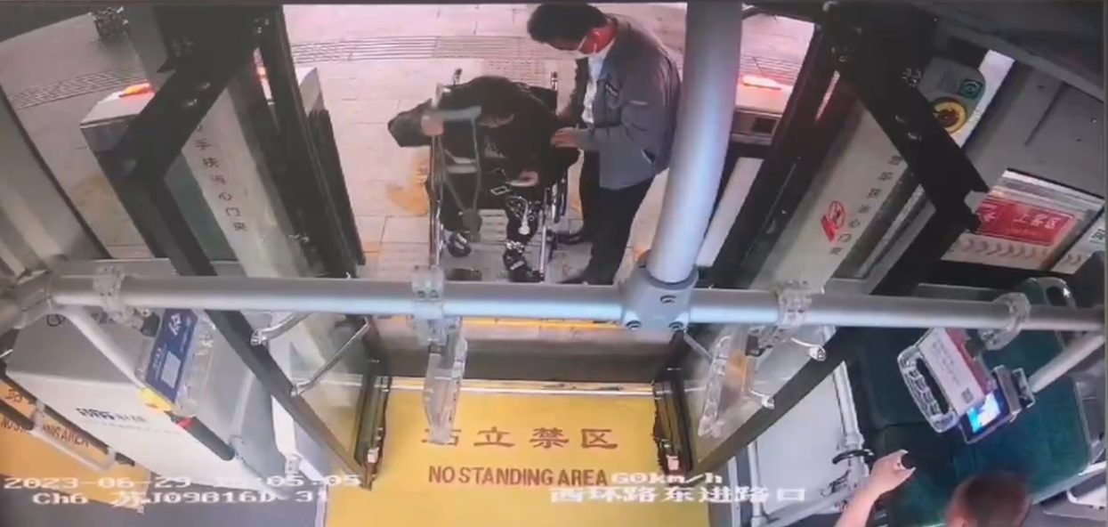 看到這一幕,蔡鳳明馬上從駕駛室出來,小心將女士扶上車安置在愛心座椅,隨后又幫其把輪椅搬上車。當(dāng)車輛抵達(dá)市中心血站站點(diǎn)時(shí),蔡鳳明再次從駕駛室出來,將這位殘疾女士和其輪椅送下車。蔡師傅的暖心服務(wù)被監(jiān)控記錄了下來。