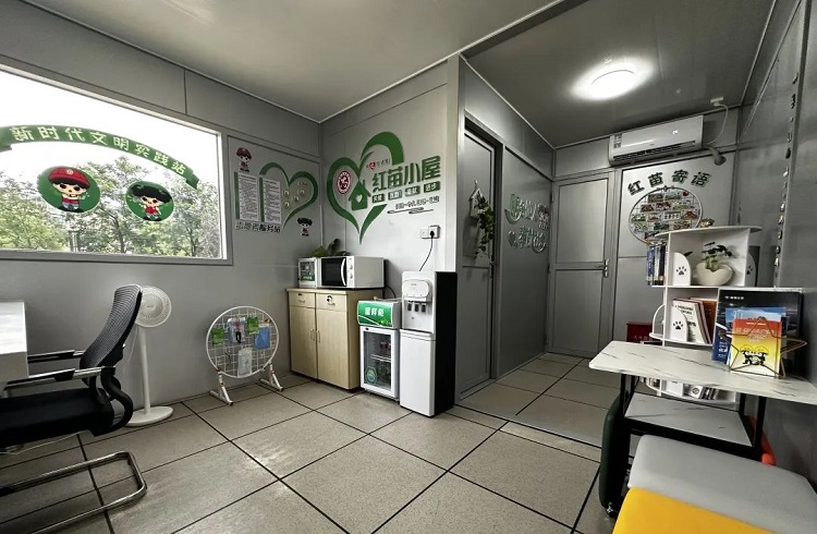 走進(jìn)紅苗小屋,10余平米的房間里,錯(cuò)落有致擺放著便民物資,除微波爐、急救藥箱、口罩、雨衣、針線包、老花鏡、垃圾袋等日常物資外,紅苗小屋還提供公交IC卡辦理充值、失物招領(lǐng)、臨時(shí)休息、飲水供應(yīng)等便民服務(wù)。