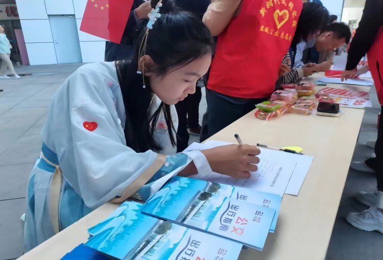 志愿者在咨詢服務臺上準備了許多制作國旗的材料,邀請往來市民現(xiàn)場制作迷你國旗,并在身上張貼國旗標貼,以此形式為祖國慶生。同時引導市民在祝福墻上寫下祝福語,表達對祖國母親最真摯的祝福以及對自己美好祝愿,現(xiàn)場氣氛熱烈。